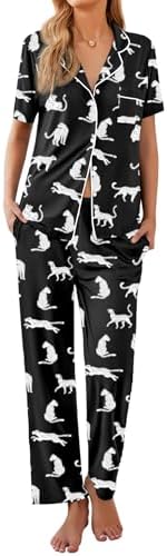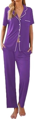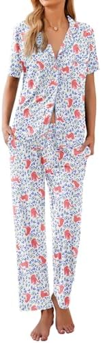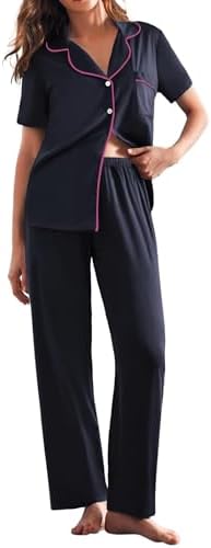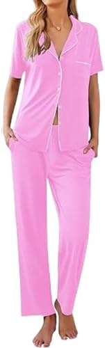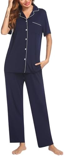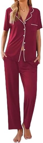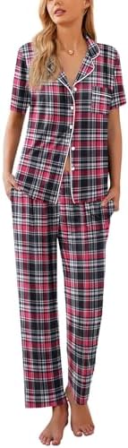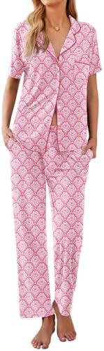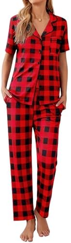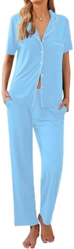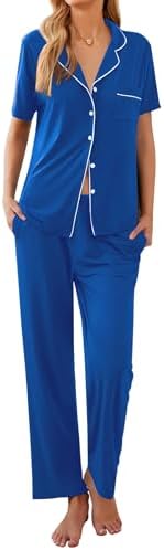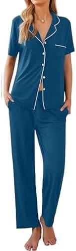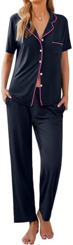 Ekouaer pajama set is crafted from a blend of 95% polyester and 5% spandex, ensuring a soft and luxurious feel against your skin. The fabric is not only soft to the touch but also easy to care for, as it is machine washable and hand washable.